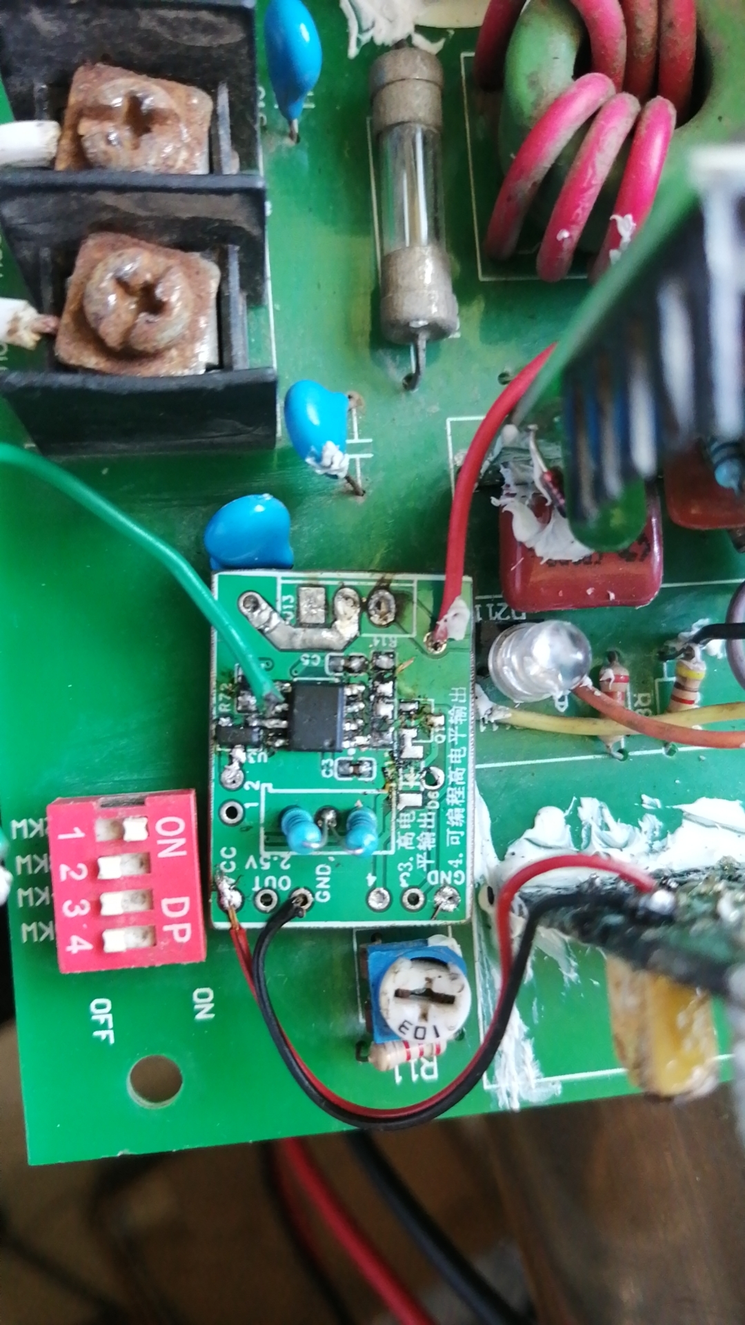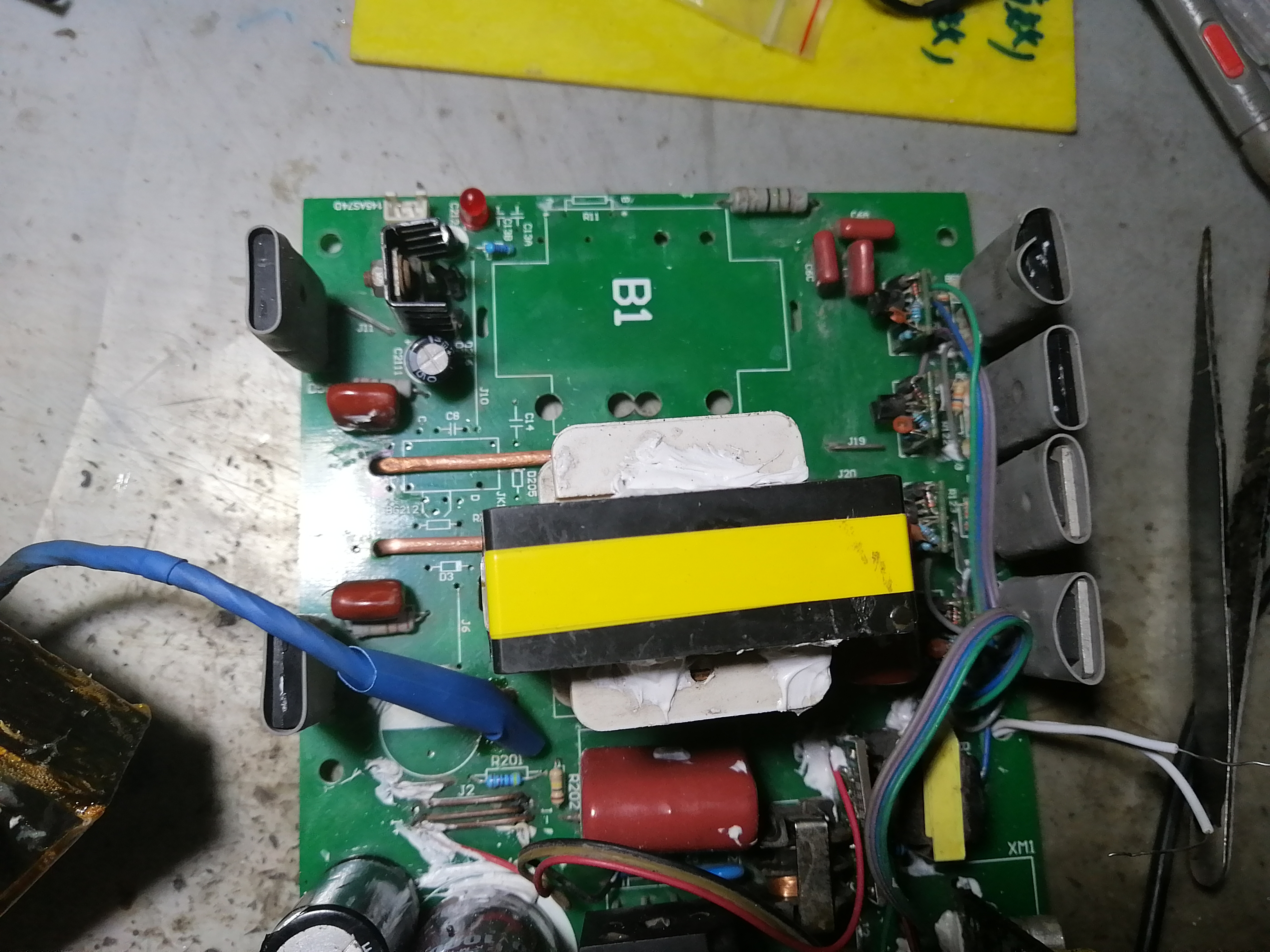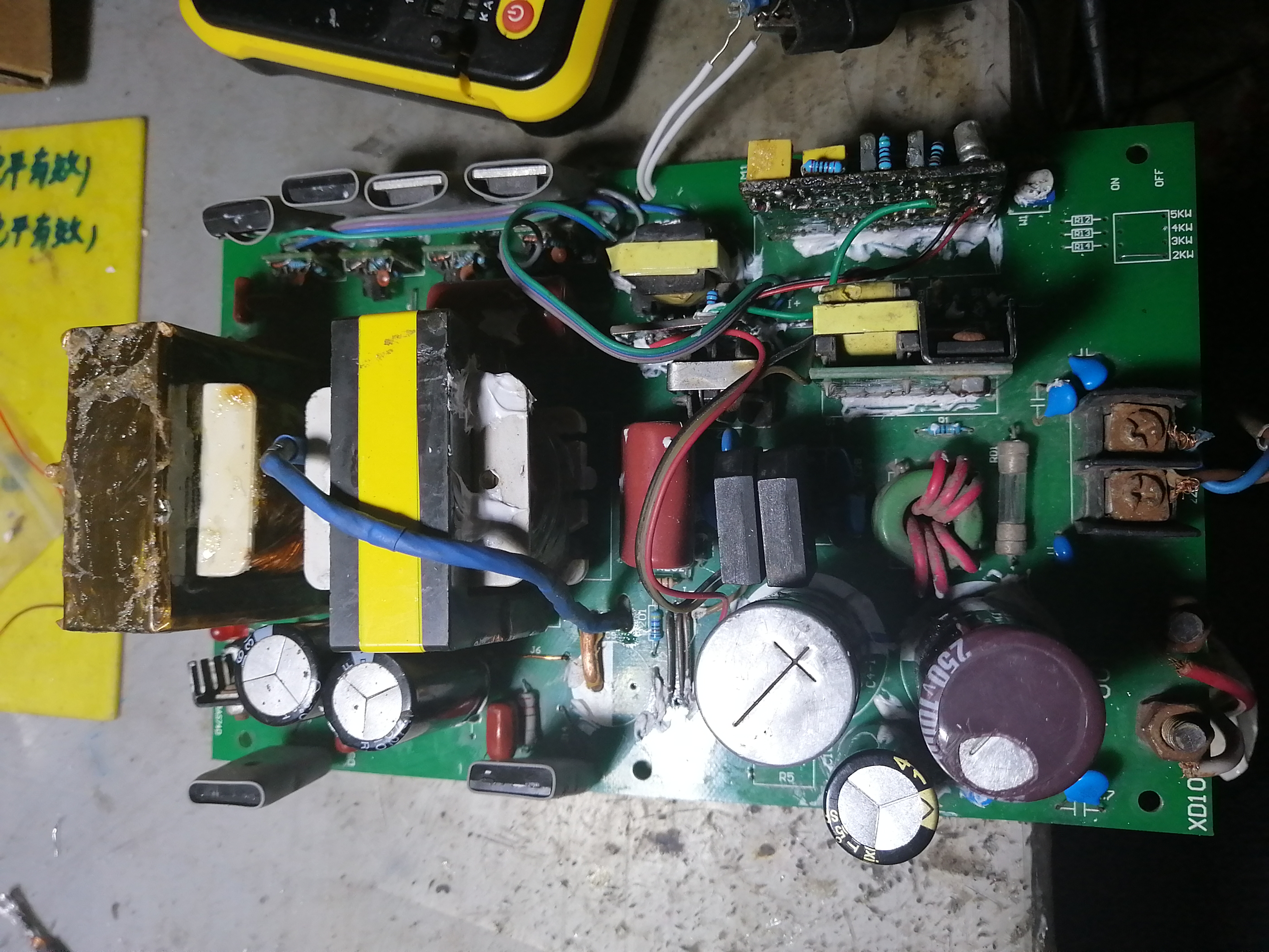 这是绕好后并浸绝缘漆的样子。下面装上测试一下看看是否正常。同时也把原来有问题的电路进行修改。
