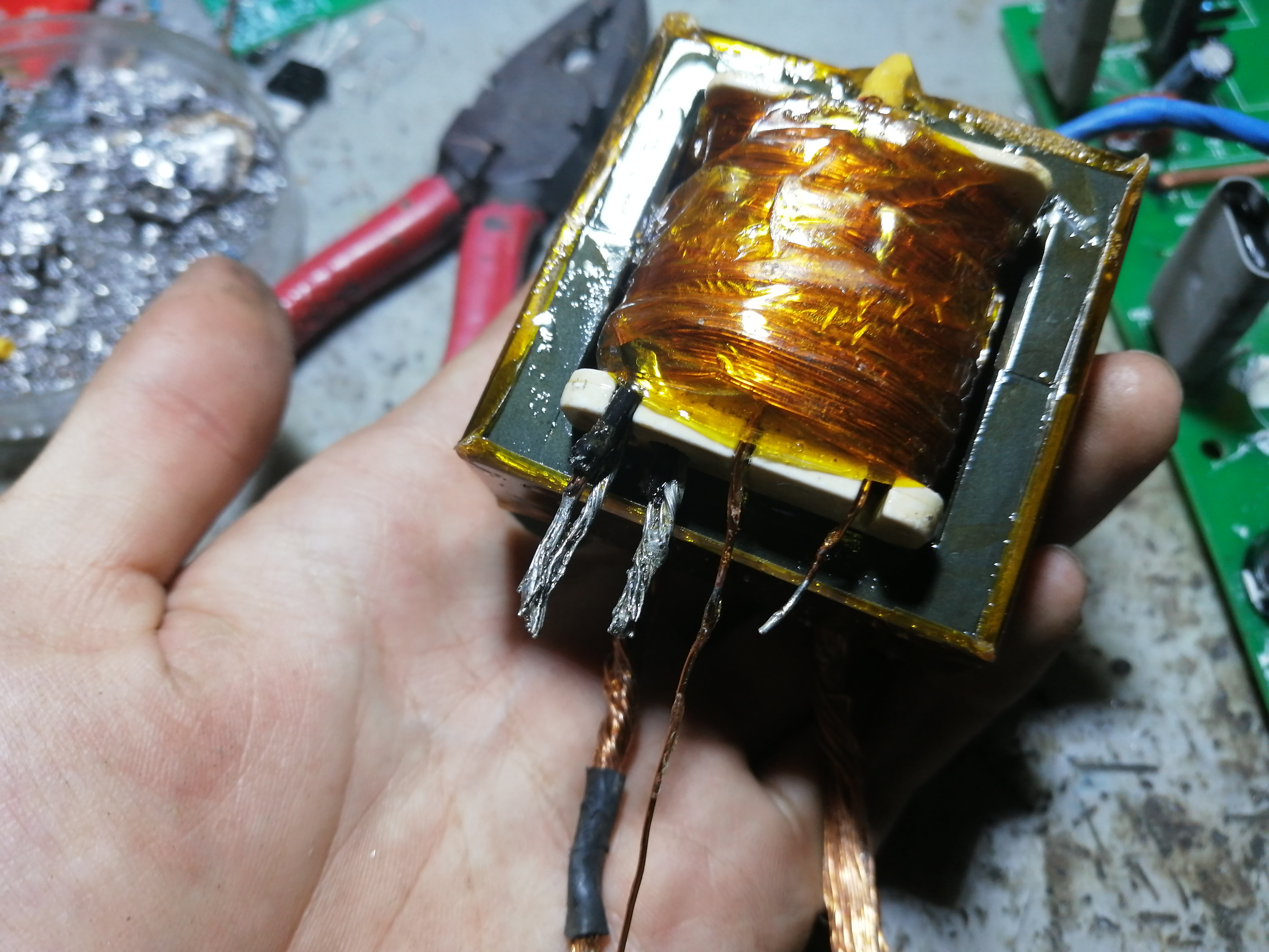 变压器用水煮大法拆开,用吹风机根本吹不动